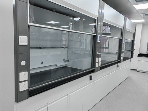 (1)頂部柜門:采兩層結構類型,里邊為鋼殼,里邊為通過檢測實驗室專屬耐熱堿6mm厚抗倍特板,有著家里防潮濕、防彎折、抗沖擊性等機械性能;針對必須要在桌面通過洗條的開窗通風柜,內部襯板無法抗潮和抗防腐蝕想要.殼子與內襯間隔熱層,可能容水、電、混合氣體地埋管系統,并可確保安全生產柜門密封與防護系統。